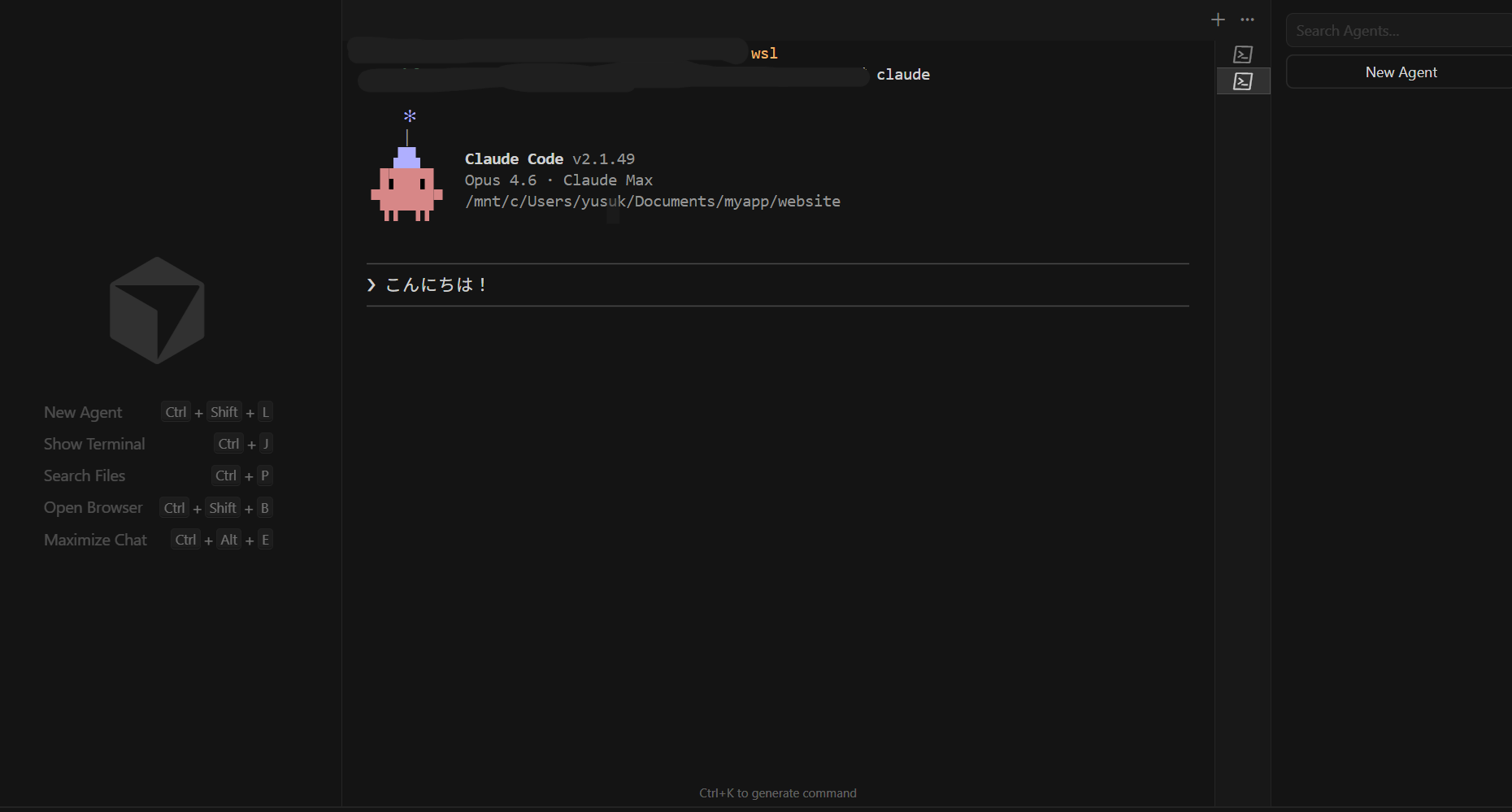 ターミナルを開いて、AIと日本語で会話するだけです。つまり、ターミナルさえ開くことが出来れば動かせますし、初期段階では十分合格と言えます。